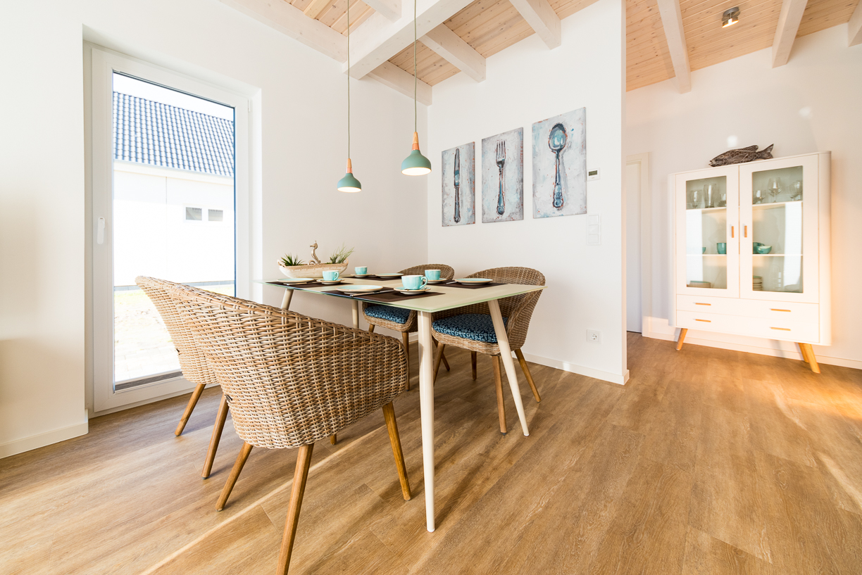 Das große kombinierte Wohn- und Esszimmer lädt zum gemeinsamen Essen, Spielen & Relaxen ein.